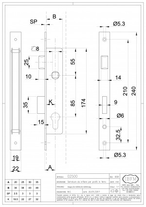 Serrure à Mortaise MM 1P 25 SCYL et G - IBFM SRL 2500025+2500A